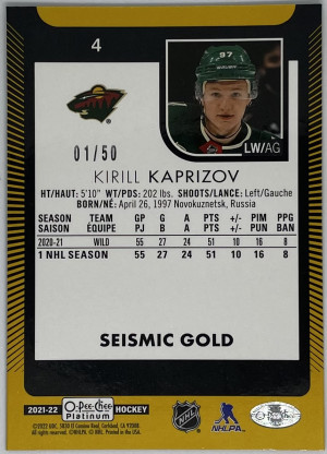 Kirill Kaprizov 2021-22 OPC Platinum Seismic Gold 01/50
