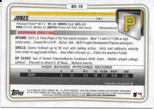 2020 Bowman Chrome Draft Sapphire #BD70 Jared Jones - Pirates