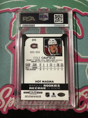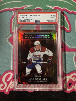 2021-22 OPC Platinum Cole Caufield Rookie Hot Magma /499 RC PSA 9