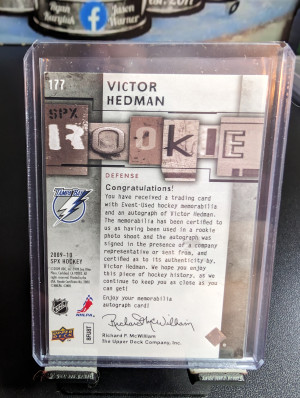 2009-10 SPX Rookie Auto Jersey /499 Victor Hedman