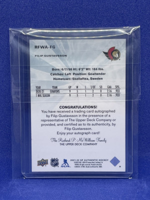 2021-22 SP Authentic FILIP GUSTAVSSON RC FUTURE WATCH AUTO ROOKIE /499 RETRO