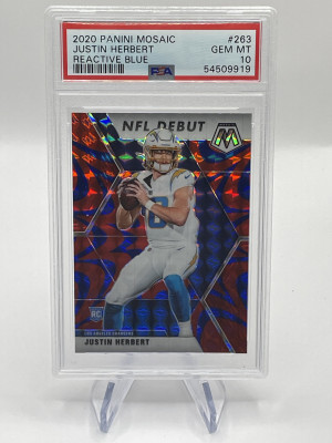 2020 Panini Mosaic Justin Herbert Reactive Blue Rookie PSA 10 Debut