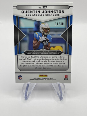 2023 Panini Obsidian Quentin Johnston FOTL Rookie Patch Auto /30