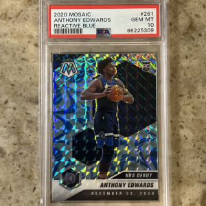 2020 Mosaic Anthony Edwards Reactive Blue RC NBA Debut PSA 10