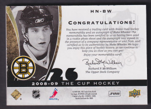 BLAKE WHEELER - 2008 The Cup Honorable Numbers Auto Patch #HN-BW, /26