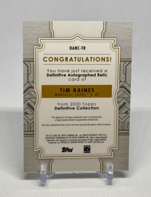 2020 Topps Definitive Relic Auto 4 / 5 Tim Raines Montreal Expos # DARC-TR