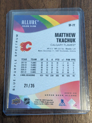 Matthew Tkachuk 2022-23 Allure Blue-Purple Spectrum 21/35 Flames Panthers