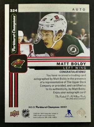 2022-23 Parkhurst Champions Matt Boldy Rookie Auto
