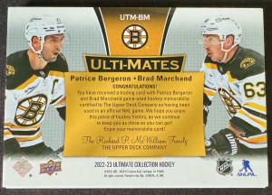 2022-23 Ultimate Collection Patrice Bergeron & Brad Marchand Ulti-Mates Game Used Jersey's