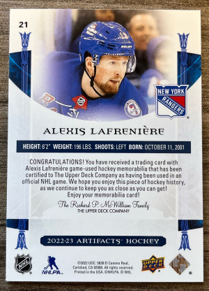 2022-2023 ARTIFACTS - ALEXIS LAFRENIERE - Dual Jersey /249