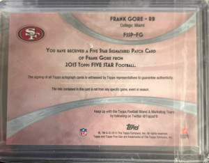 TOPPS FIVE STAR FRANK GORE PATCH AUTOGRAPH 12/25