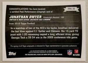 2010 Topps Peak Performance Auto Jonathan Dwyer #PPA-JD Rookie Auto RC