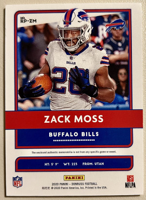 2020 Panini Donruss ZACK MOSS RC Rookie Phenoms Jersey Patch Relic Colts