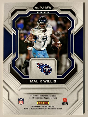 2022 Panini Prizm MALIK WILLIS Silver Prizm Relic Jersey Patch Rookie #PJ-MW RC