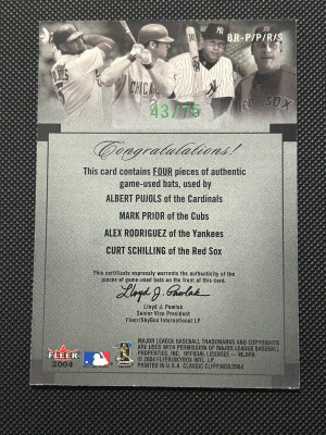 Albert Pujols Mark Prior Alex Rodriguez Curt Schilling 2004 Fleer Bat Rack /75