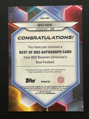 Bo Nix 2023 Bowmans Best University Refractor Rookie Auto RC #BOA-BN SA3