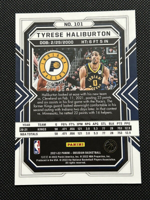 Tyrese Haliburton 2021 Obsidian #101 Electric Etch Yellow Flood /10 Pacers