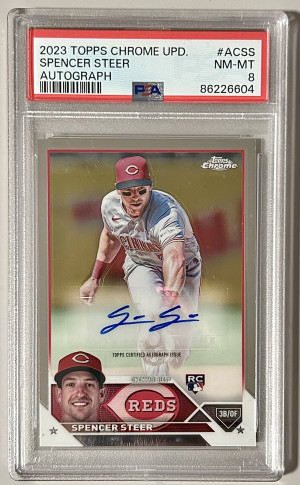 2023 Topps Chrome Update SPENCER STEER RC AUTO PSA 8 #ACSS Reds