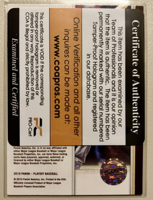 2019 Panini Vladimir Guerrero Jr On Card Auto COA - Toronto Blue Jays