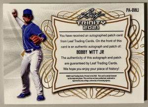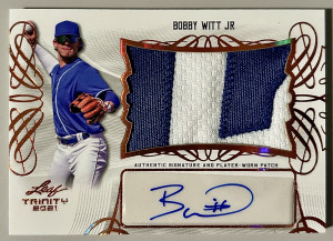 2021 Leaf Trinity Bobby Witt Jr RC Patch Auto Royals 2 Color Patch PA-BWJ RPA