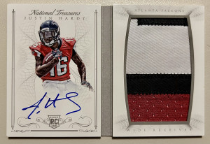 2015 Panini National Treasures /99 Justin Hardy #RBV-JH Rookie Auto 3-Color RPA Booklet