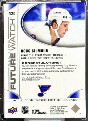 Doug Gilmour 2020-21 Signature Legends All-Time Future Watch Auto 52/99