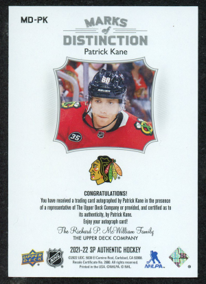 2021-22 SP Authentic Marks of Distinction #MDPK Patrick Kane Auto /25