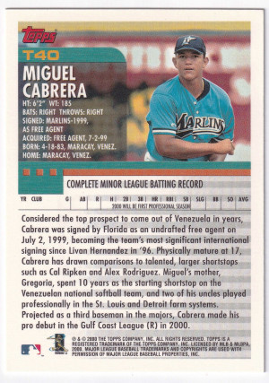 2000 Topps Traded Miguel Cabrera RC Rookie #T40
