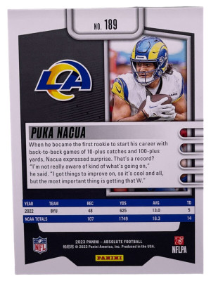 2023 Panini Absolute #189 Puka Nacua Retail Rookie RC