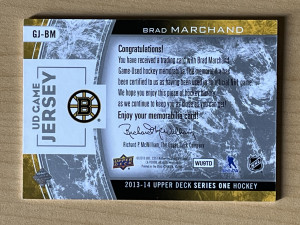 2013-14 Upper Deck UD Game Jerseys Brad Marchand #GJ-BM Memorabilia —VVCARDS—