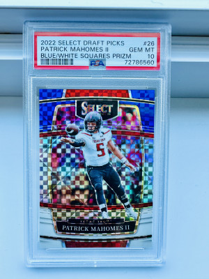 2022 SELECT DRAFT PICKS #26 PATRICK MAHOMES II GEM MT BLUE/WHITE SQUARES /100 POP 2