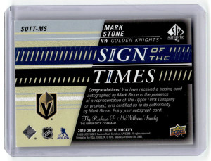 2019-20 SP Authentic #SOTT-MS Mark Stone Sign of the Times Black #/49