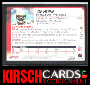 Joe Horn 2003 Bowman Chrome #43 Refractors #/500 New Orleans Saints