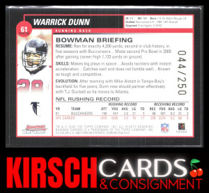 Warrick Dunn 2002 Bowman Chrome #61 Xfractors #/250 Atlanta Falcons