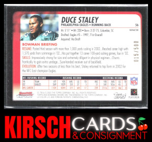 Duce Staley 2003 Bowman Chrome #56 Refractors #/500 Philadelphia Eagles