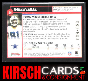 Raghib Ismail 2002 Bowman Chrome #76 Refractors #/500 Dallas Cowboys