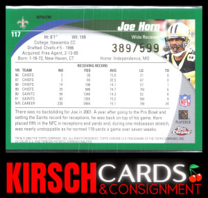 Joe Horn 2002 Topps Chrome #117 Black Refractors #/599 New Orleans Saints