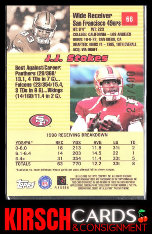 J.J. Stokes 1999 Bowman's Best #68 Refractors #/400 San Francisco 49ers