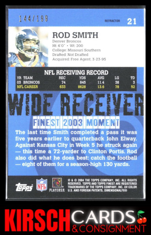 Rod Smith 2004 Finest #21 Refractors #/199 Denver Broncos