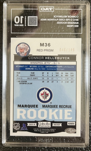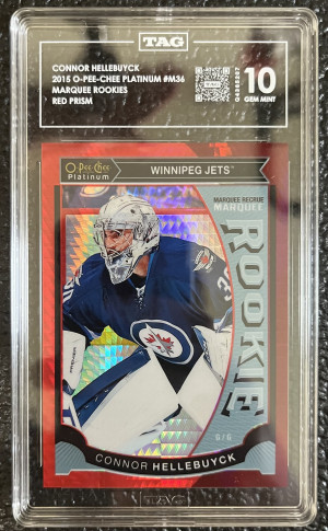 2015-16 Connor Hellebuyck O-Pee-Chee Platinum Red Prism Marquee Rookies TAG 10 #/149