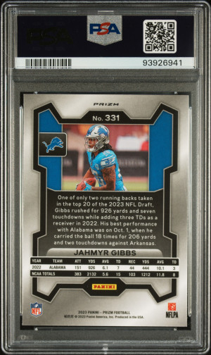 2023 Panini Prizm Jahmyr Gibbs #331 PSA 10