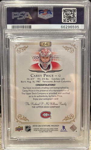 2019-2020 STATURE - CAREY PRICE - Emerald Autograph /65