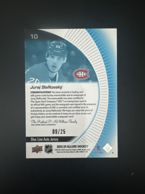 2023-24 Allure Juraj Slafkovski Blue Line Auto Jersey /25
