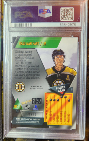 2022 Metal Universe Blue Precious Metal Gems PMG #RT-11 Brad Marchand 39/50 PSA9