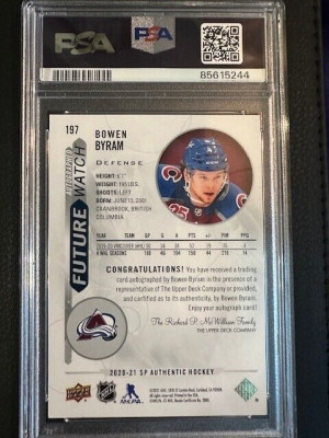 2020-21 SP AUTHENTIC BOWEN BYRAM FUTURE WATCH PSA 9 AUTO ROOKIE 264/999 #197