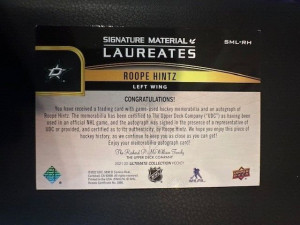 2021 22 ULTIMATE ROOPE HINTZ SIGNATURE MATERIAL LAUREATES AUTO PATCH /99 STARS
