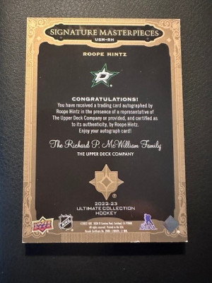 2022-23 Ultimate - Roope Hintz - Signature Materpieces auto