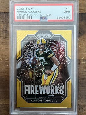 2022 Prizm Aaron Rodgers gold fireworks 5/10 PSA 9
