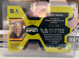 Jeremy Swayman 2021-22 UD Extended Hockey UD3 Die Cut Rookie Impact 79/100