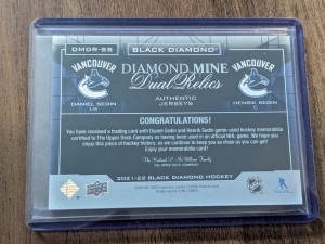 Diamond mine dual relics - Daniel Sedin, Henrik Sedin - 2021-22 black diamond